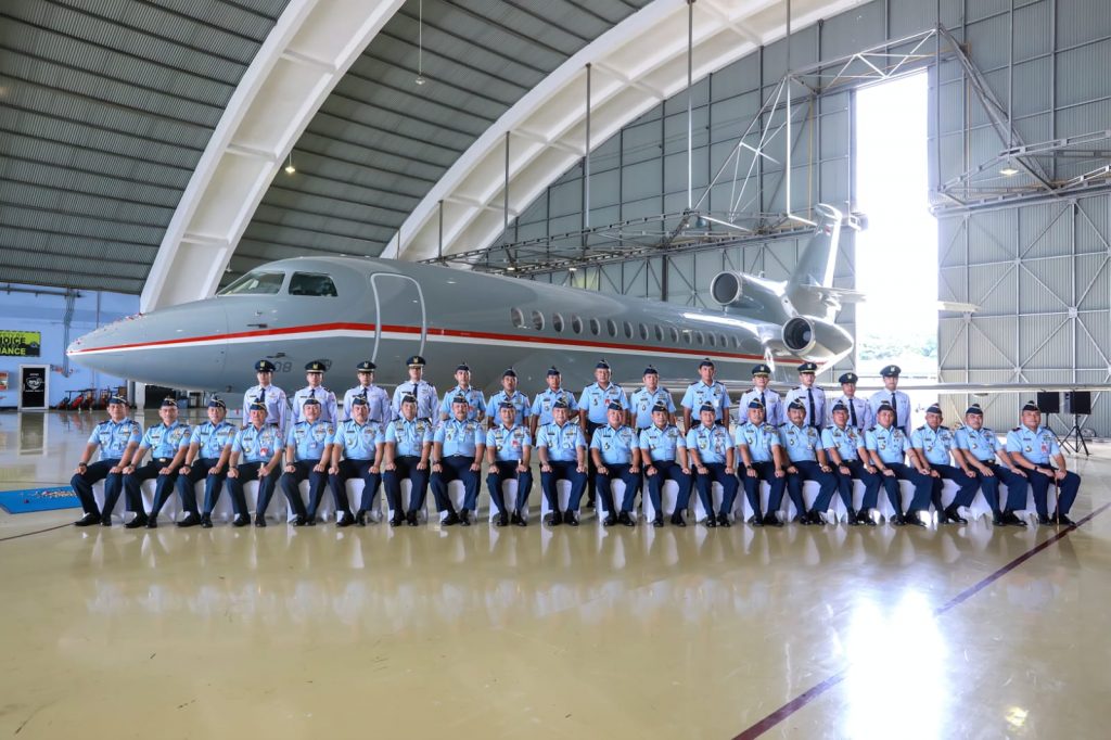 Foto bersama KSAU Marsekal TNI Fadjar Prasetyo dan personel Skadron Udara 17 usai tradisi penyambutan pesawat Dassault Falcon 7X dan Falcon 8X. Foto: Dispenau