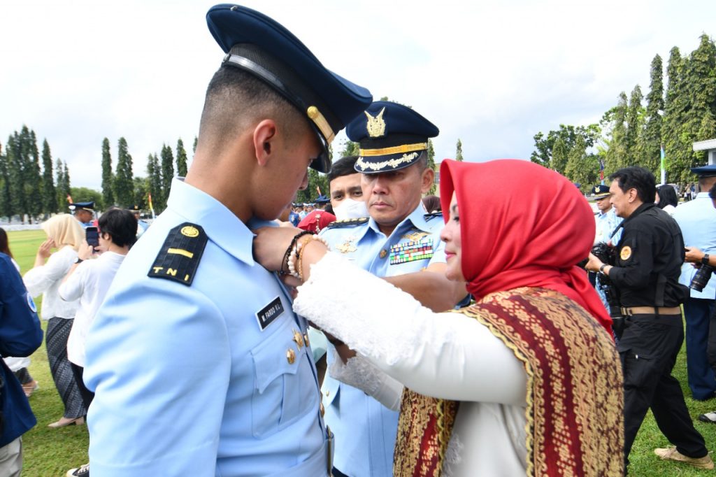 Ada air mata bahagia saat orang tua menyematkan wing penerbang kepada putranya, melanjutkan pengabdian sang ayah yang juga penerbang TNI AU. Foto: beny adrian/ mylesat.com