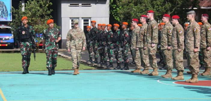 MYLESAT.COM – Batalyon Komando 464/ Nanggala Kopasgat melaksanakan Latihan Bersama Teak Spear Iron 2023 Joint Combine Exchange Training dengan US Air Force Special Operation Command (AFSOC). Latihan dibuka dalam sebuah upacara militer di Yonko 464, Kamis (19/01/2023).