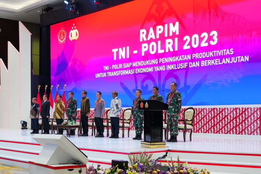 Hal itu sejalan dengan tema yang diangkat dalam Rapim TNI-Polri 2023, yakni “TNI Polri Siap Mendukung Peningkatan Produktivitas untuk Transformasi Ekonomi yang Inklusif dan Berkelanjutan”.