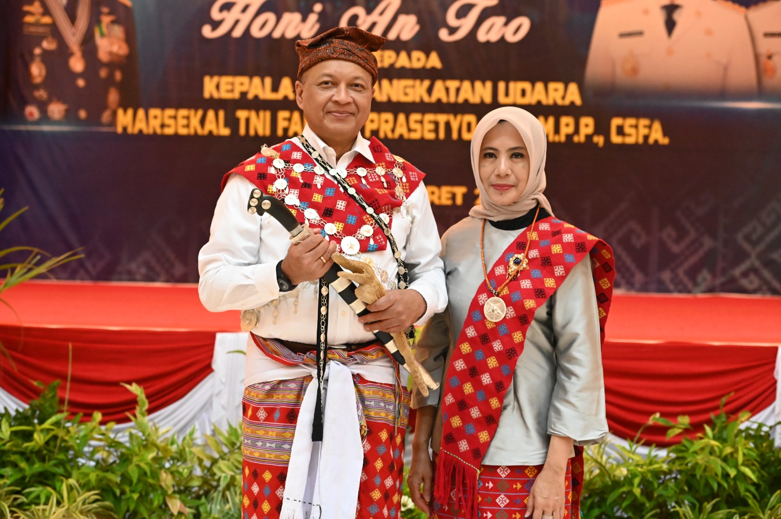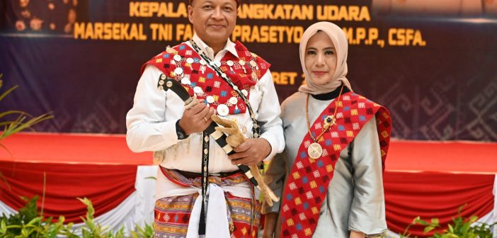 MYLESAT.COM – KSAU Marsekal TNI Fadjar Prasetyo mendapat gelar adat Honi An Tao dari kerajaan Bana Nainemo, Timor Tengah Utara.