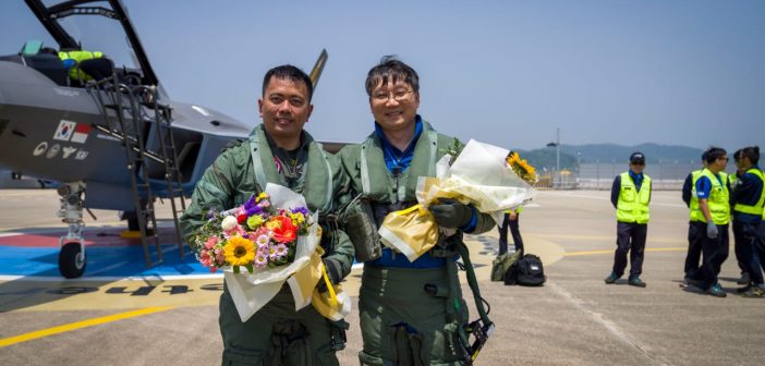 Fotografer KAI mengabadikan Kolonel Pnb Muhammad “Mammoth” Sugiyanto usai menerbangkan F-21 Boramae. Foto: KAI