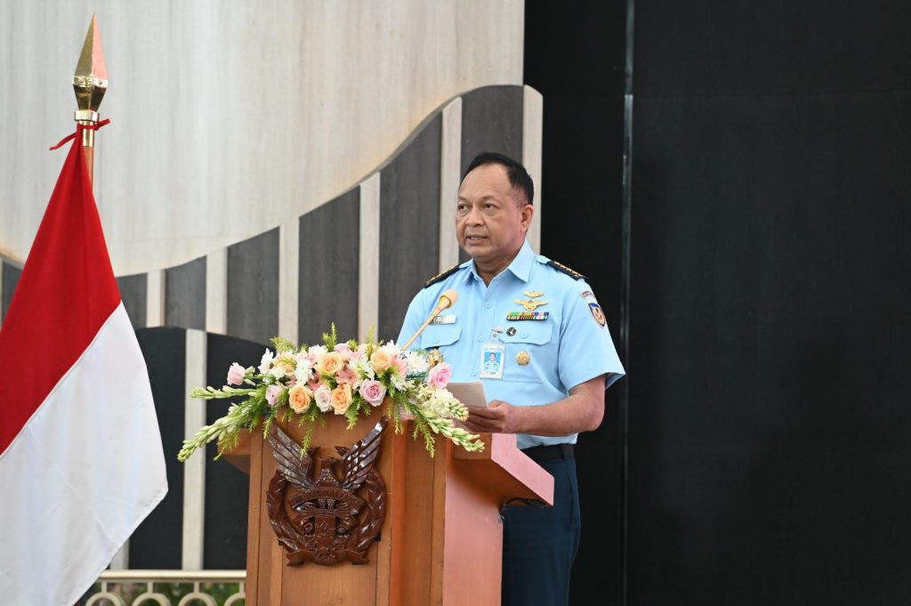 KSAU Marsekal TNI Fadjar Prasetyo memberikan sambutan pada acara KSAU Award 2023. Foto: beny adrian/ mylesat.com