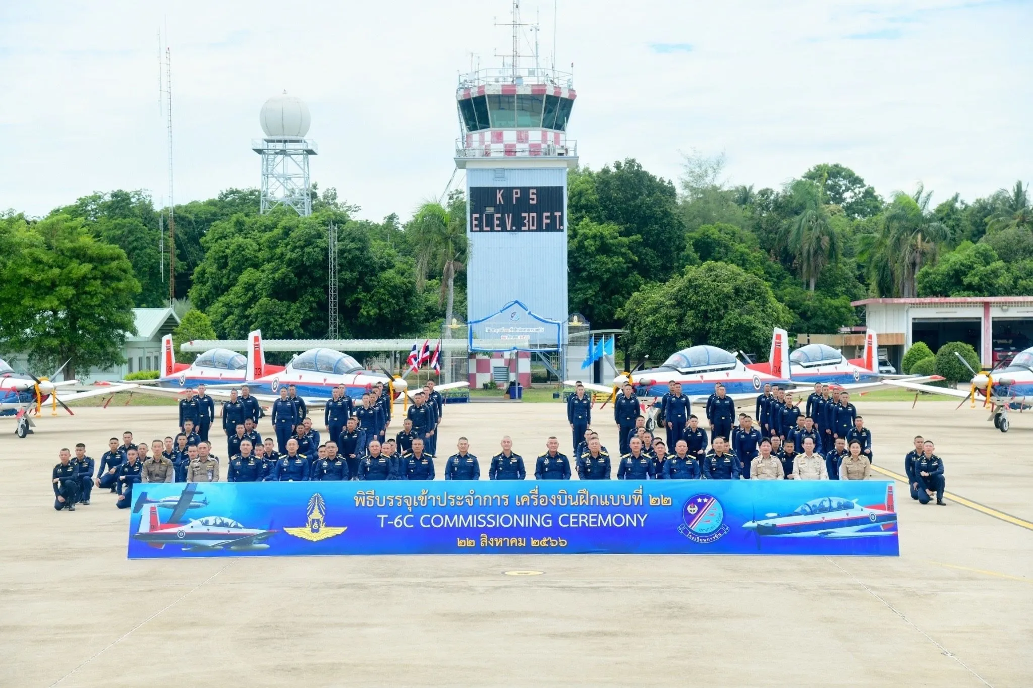 Angkatan Udara Thailand memamerkan ke 12 T-6TH Texan II di landasan pacu. Tampilan publik ini melambangkan keberhasilan RTAF memperoleh satu set lengkap 12 pesawat latih T-6TH. Upacara peresmian ini juga diperkaya dengan peresmian gedung simulator baru di Sekolah Penerbang Angkatan Udara Thailand.