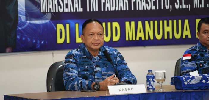 KSAU Marsekal TNI Fadjar Prasetyo memberikan pengarahan kepada personel Skadron Udara 27 didampingi Panglima Koopsud III Marsda TNI Donald Kasenda. Foto: Dispenau