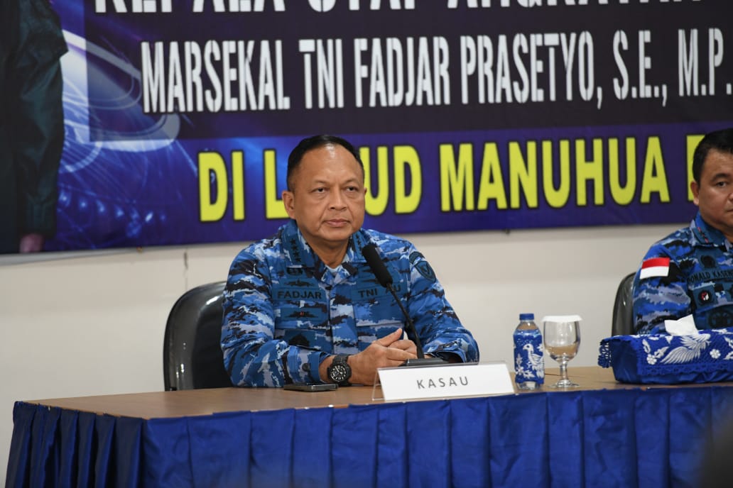 Di Skadron paling timur yang mengoperasikan pesawat CN235-200 ini, KSAU Marsekal TNI Fadjar Prasetyo berbicara di hadapan seluruh personel Skadron.