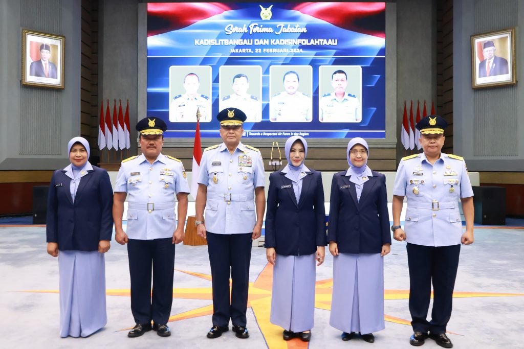 Marsma TNI Prof. Rudy Agus Gemilang Gultom (paling kanan) usai dilantik KSAU Marsekal TNI Fadjar Prasetyo sebagai Kadisinfolahtaau. Foto: Dispenau